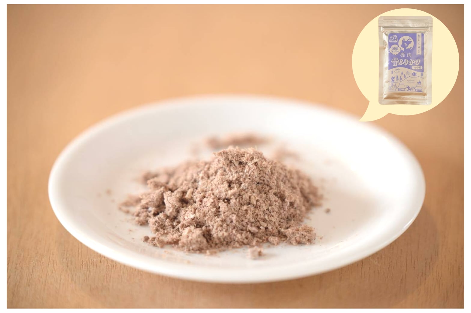 粉砕した鹿の骨を更にミキサーにかけ、ふりかけにしました。